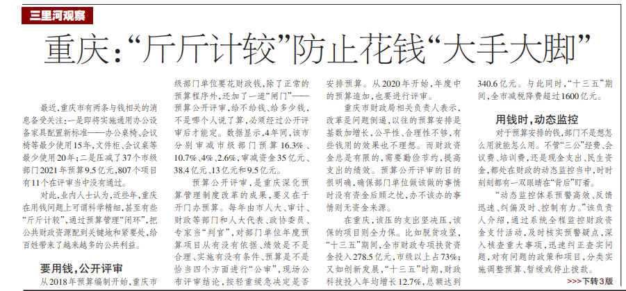 中国财经报 | 重庆:“斤斤计较”防止花钱“大手大脚”