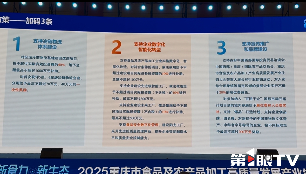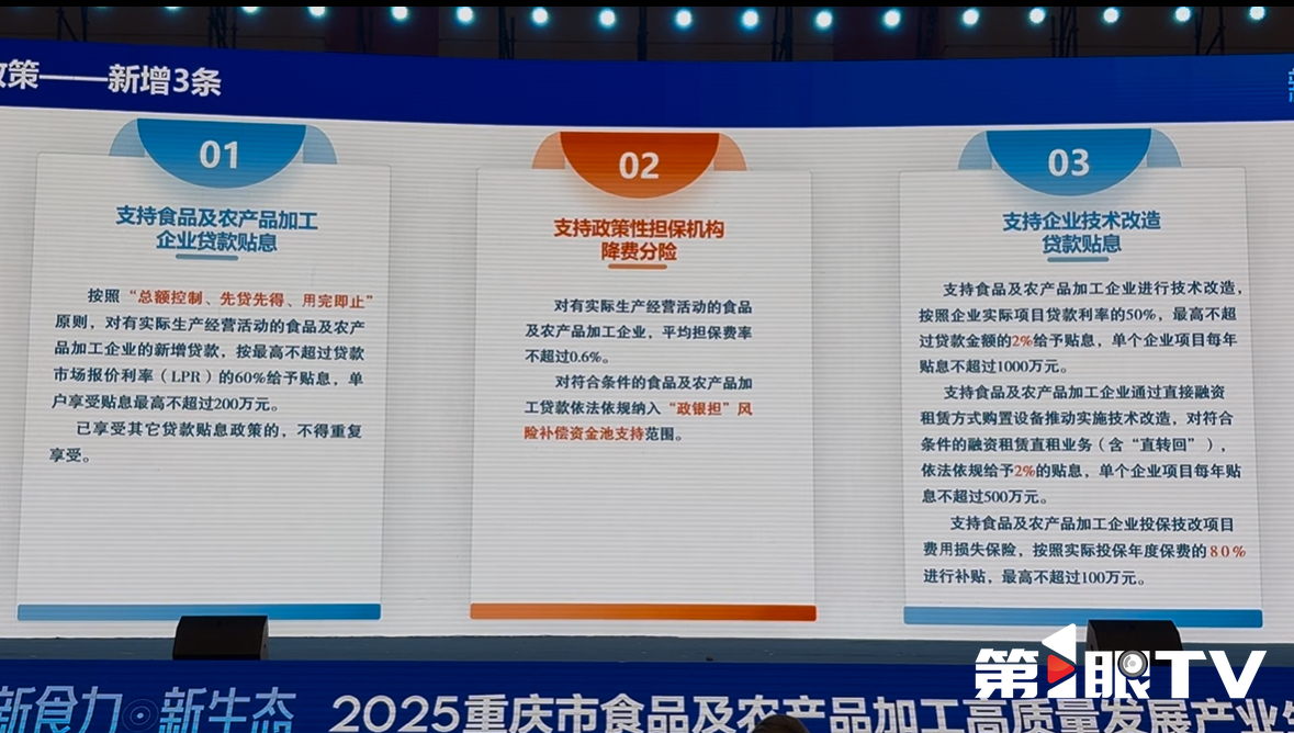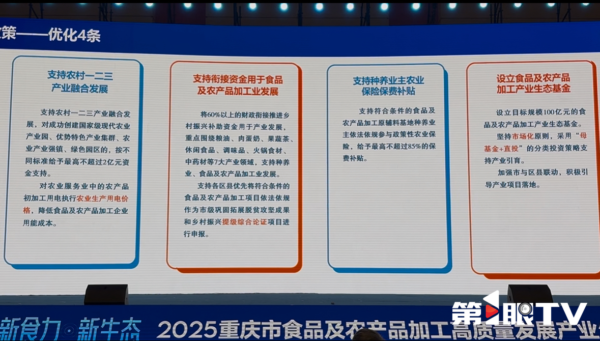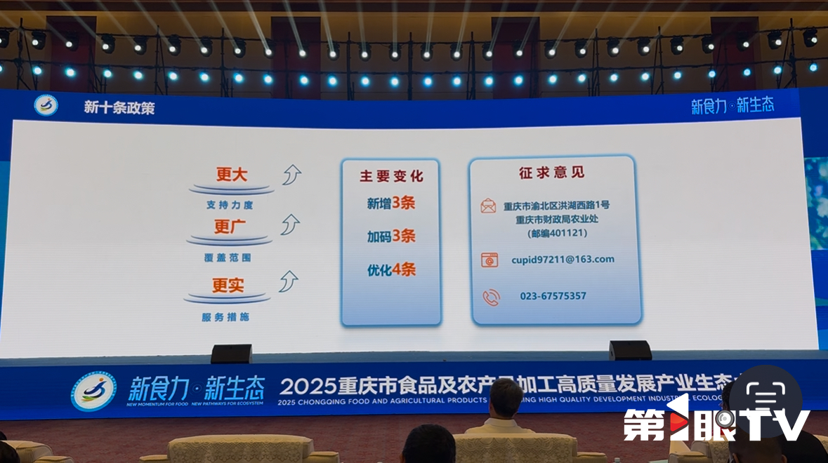 重庆支持食品及农产品加工业高质量发展再出实招!10月16日,2025重庆市食品及农产品加工高质量发展产业生态大会举行,会上,正式发布重庆市食品及农产品加工产业政策。