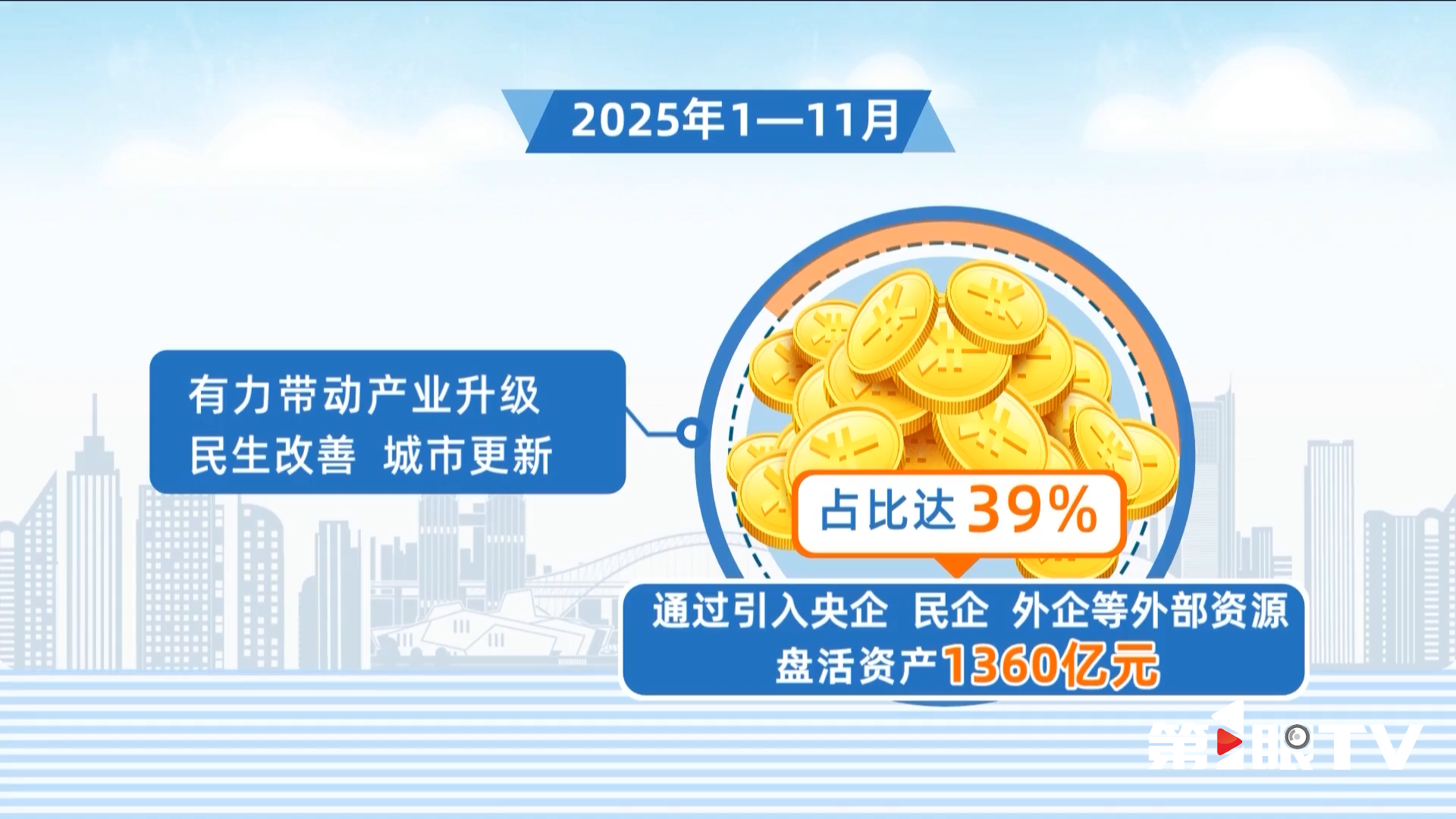 2025年1—11月,全市盘活资产3452亿元,回收资金1728亿元,其中,通过引入央企、民企、外企等外部资源盘活资产1360亿元,占比达39%,有力带动了产业升级、民生改善与城市更新。
