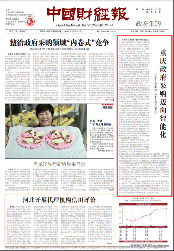 中国财经报|重庆政府采购迈向智能化 “政务·政府采购一件事”应用系统上线