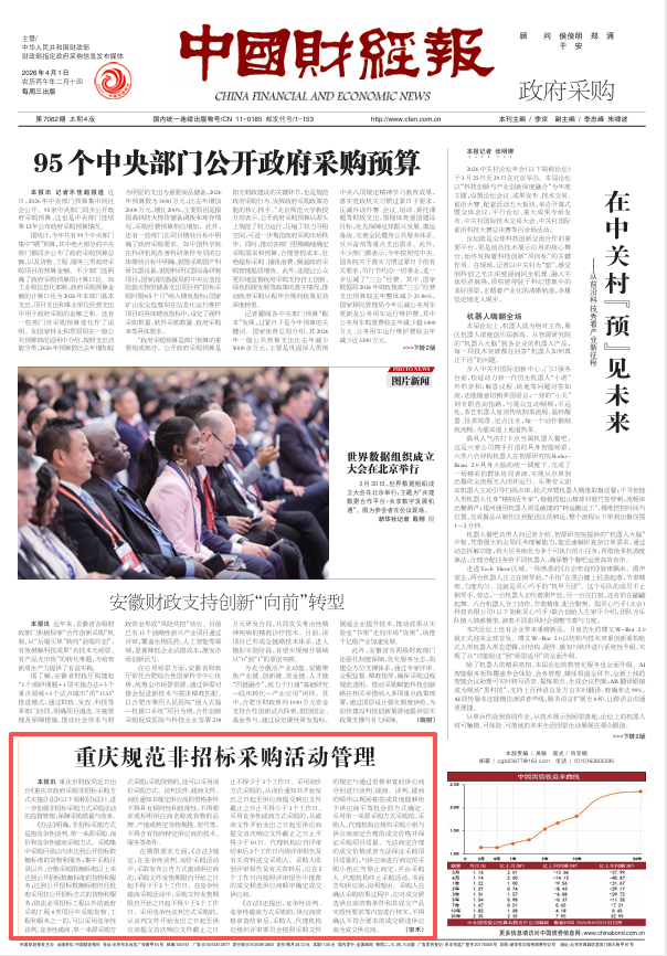 本报讯 重庆市财政局近日出台《重庆市政府采购非招标采购方式实施办法》(以下简称《办法》),进一步加强非招标采购方式采购活动的监督管理,保障采购质量与效率。