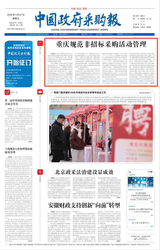 本报讯 重庆市财政局近日出台《重庆市政府采购非招标采购方式实施办法》(以下简称《办法》),进一步加强非招标采购方式采购活动的监督管理,保障采购质量与效率。
