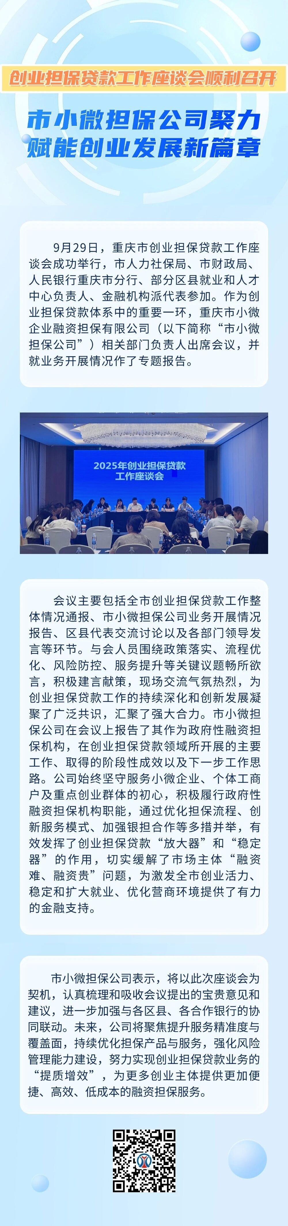 重庆小微担保公司:创业担保贷款工作座谈会顺利召开市小微担保公司聚力赋能创业发展新篇章