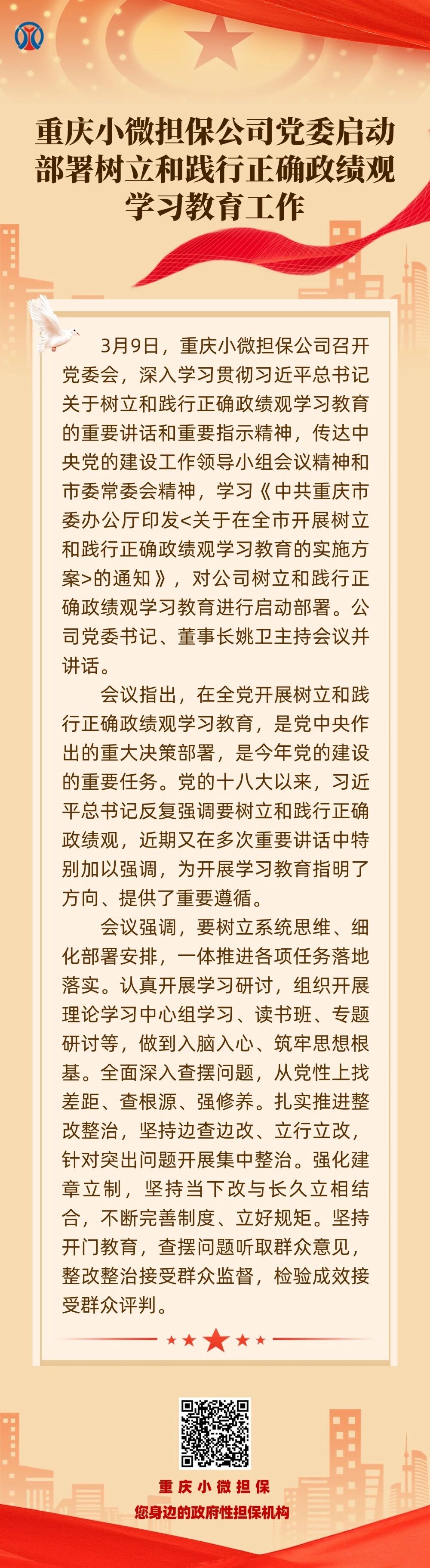 重庆小微担保公司:党委启动部署树立和践行正确政绩观学习教育工作