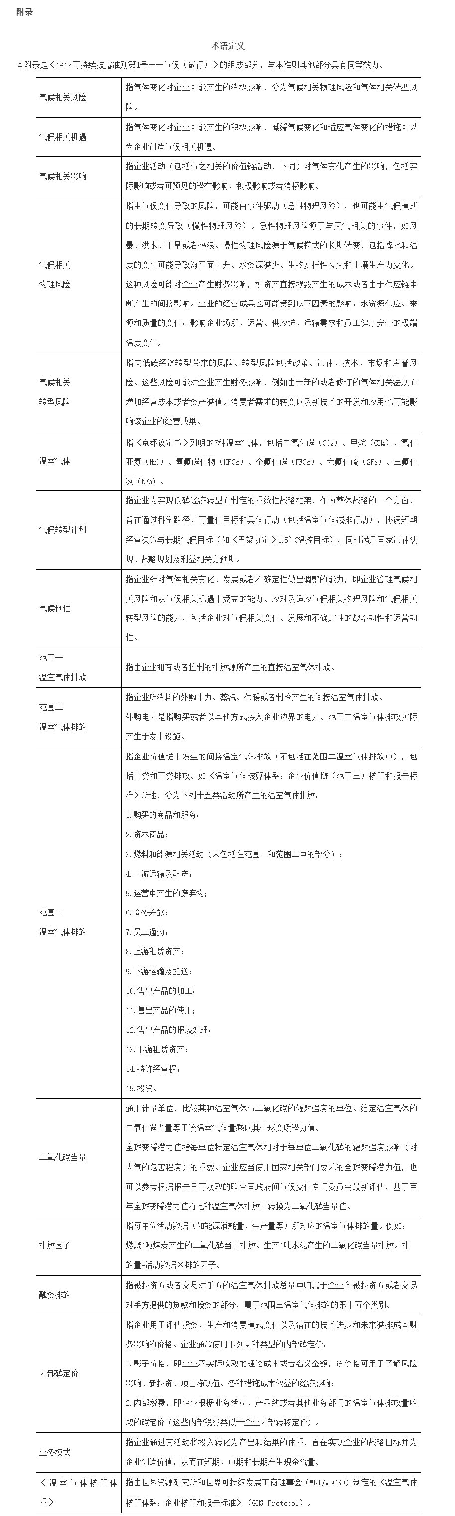 为贯彻落实党的二十大和二十届历次全会精神,推动经济、社会和环境可持续发展,稳步推进我国可持续披露准则体系建设,规范企业可持续发展信息披露,财政部会同生态环境部、外交部、国家发展改革委、工业和信息化部、商务部、中国人民银行、国务院国资委、金融监管总局、中国证监会制定了《企业可持续披露准则第1号——气候(试行)》,现予印发,在实施范围及实施要求作出规定之前,由企业自愿实施。