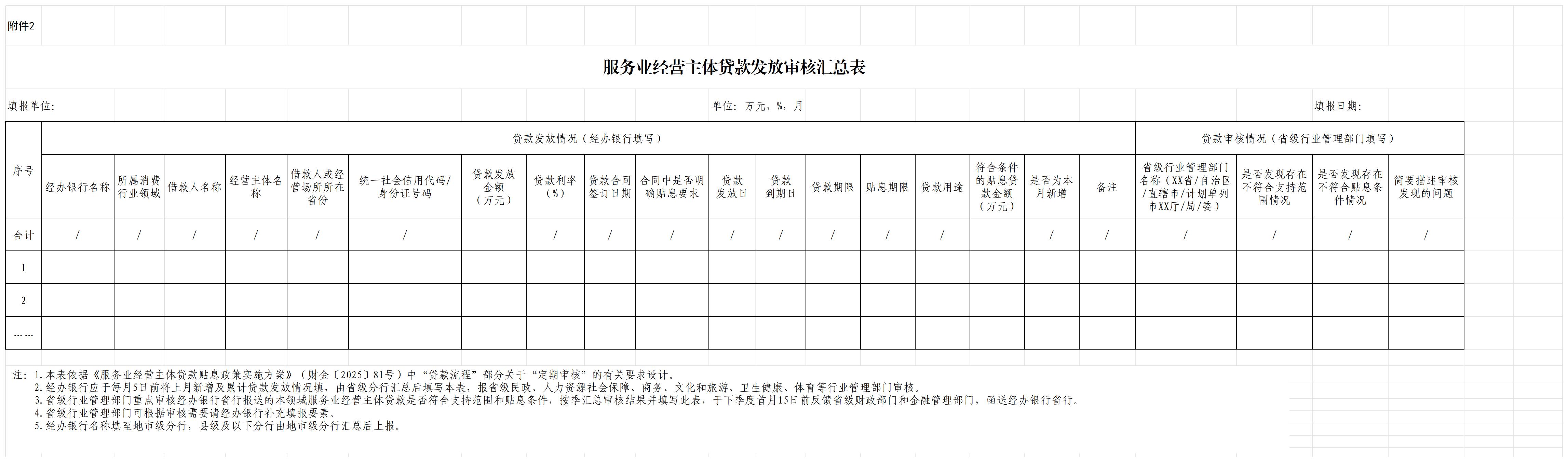 2.服务业经营主体贷款发放审核汇总表(经办银行、行业部门填写)