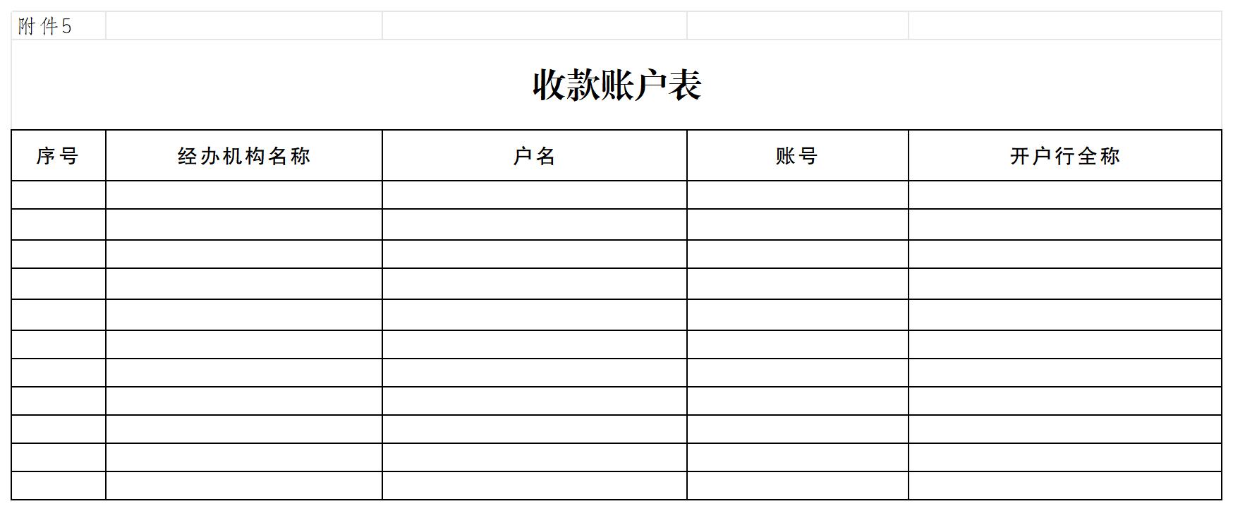 5.收款账户表(经办银行填写)