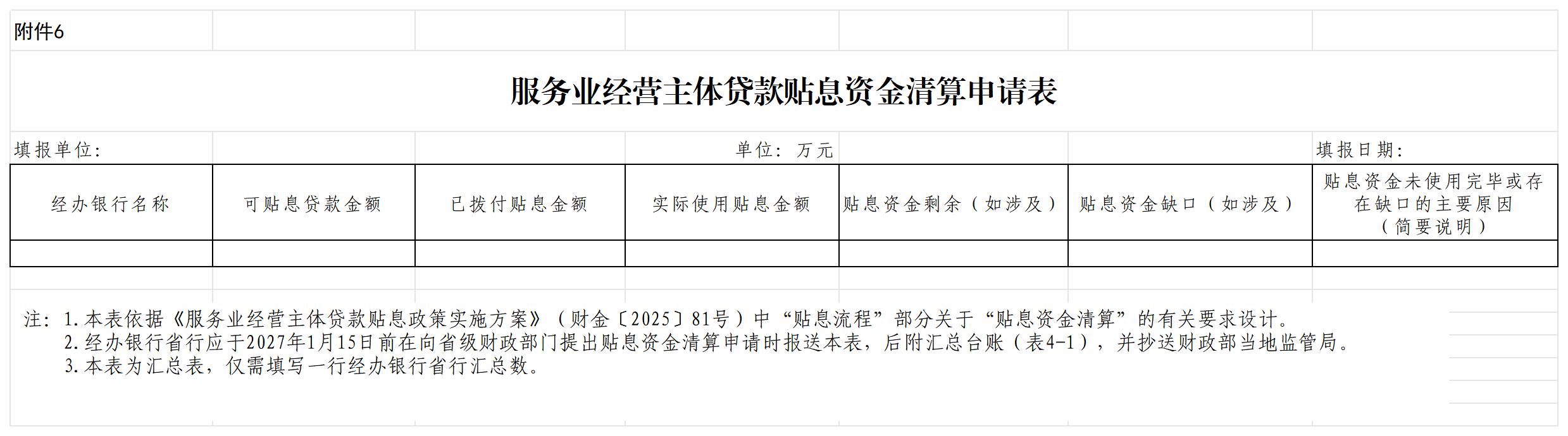 6.服务业经营主体贷款贴息资金清算申请表(经办银行填写)