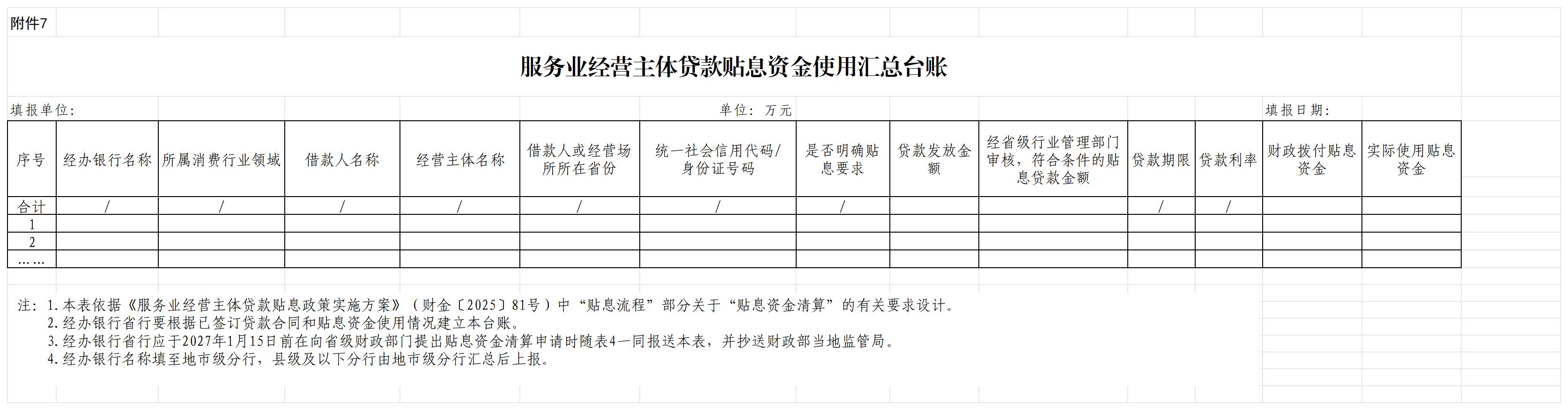 7.服务业经营主体贷款贴息资金使用汇总台账(经办银行填写)