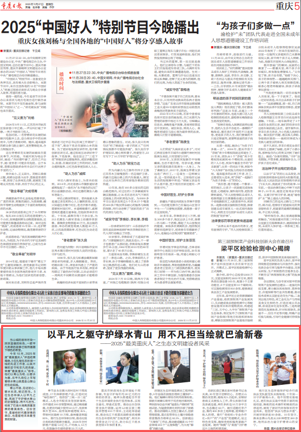 重庆日报|以平凡之躯守护绿水青山 用不凡担当绘就巴渝新卷——2025“最美重庆人”之生态文明建设者风采