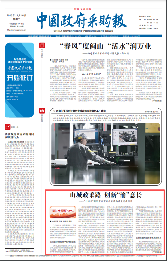 中国政府采购报|山城政采路 创新“渝”意长——“十四五”期间重庆市政府采购高质量发展综述